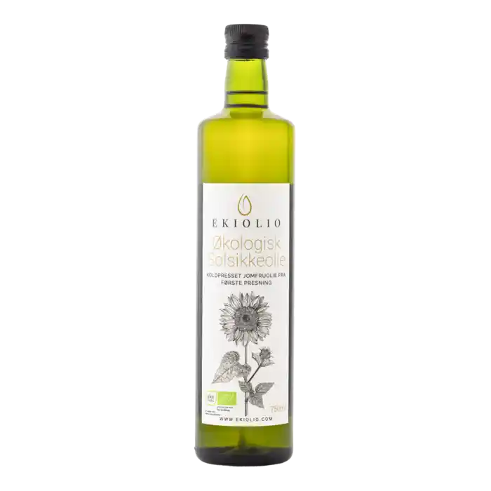 Økologisk koldpresset solsikkeolie fra Spanien, 750 ml.