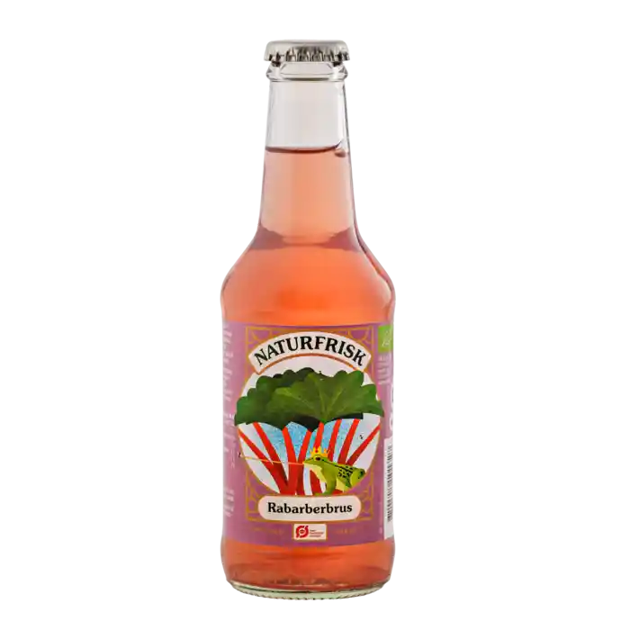 25 cl, ekskl. pant | Sommerlig rabarber-sodavand fra Naturfrisk