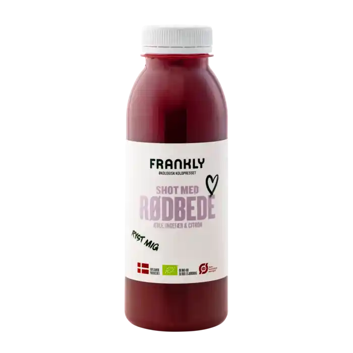 Økologisk ingefær- og rødbedeshot fra Frankly, 34 cl.