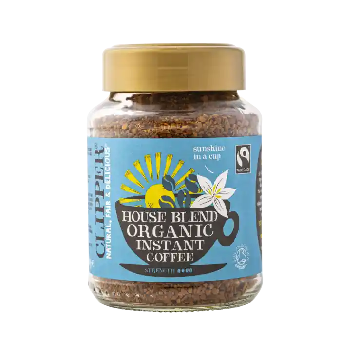 Mellemristet økologisk instant kaffe fra Clipper, 100 g.