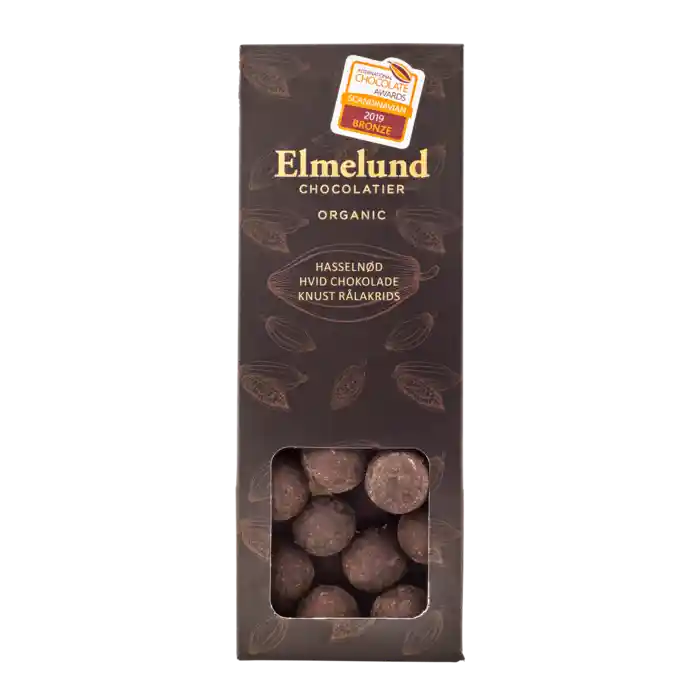 Den klassiske kombination af hvid chokolade og lakrids passer perfekt sammen med den sprøde hasselnød og skaber en delikat smagsoplevelse.