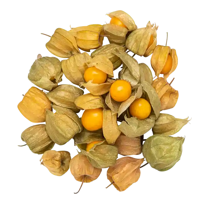 Med sit dekorative hylster er det fristende kun at bruge ananaskirsebær til pynt. Men inde bag den pergamenttynde lampeskærm gemmer sig en gylden perle på størrelse med et kirsebær. Smagen er dog mere i retning af stikkelsbær eller passionsfrugt.