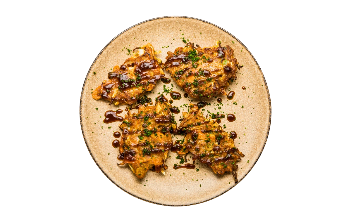 Navnet er lidt svært at gennemskue ved første øjekast, men smagen er ikke til at tage fejl af! Okonomiyaki er saftige japanske madpandekager mættet med sprøde grøntsager, især kål, og serveret med smagsfulde dressinger til, som sød hoisinsauce og syrlig mayo.