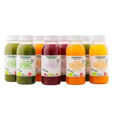 8 flasker a 250 ml, ekskl. pant | Udvalgte juicer af frisk, koldpresset frugt og grønt