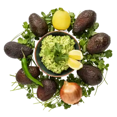 2 kg + smagsgivere | Modne avocadoer med ingredienser til at lave guacamole – opskrift medfølger