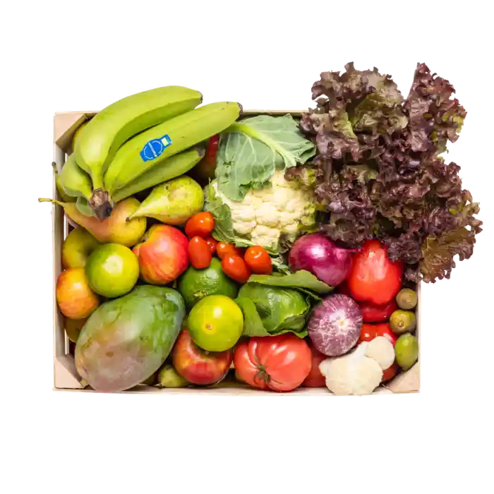 Kasse med sæsonens bedste økologiske frugt og grønt, min. 4 kg.
