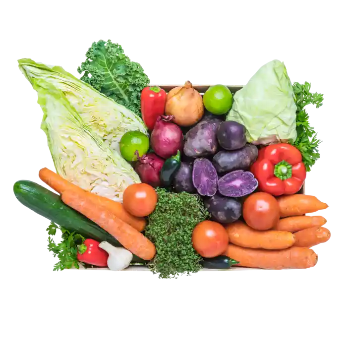 Min. 4 kg økologiske grøntsager, passer typisk til 2-3 personer.