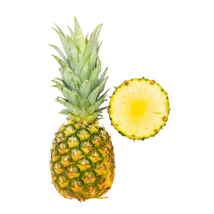 Vores ananas er af sorten MD2, som er nogle af de sødeste ananas man kan spise. Ananas indeholder enzymet bromelin, der gør at dine læber og mundhulen kan komme til at svie lidt, når du spiser større mængder af frugten. Til gengæld belønnes du med det sødeste, søde saftige frugtkød.