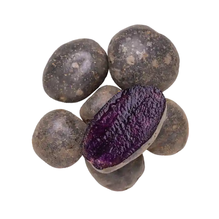 Kartoflen beholder sin blå farve ved tilberedning, så du kan overraske din familie med blå chips, blå kartoffelmos eller blå kartoffelsalat.