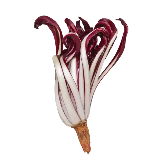 Tardivo-radicchio er en italiensk vinterdelikatesse, kendt for sine elegante, krøllede blade og sin karakteristiske balance mellem bitterhed og sødme. Den dyrkes traditionelt i Veneto-regionen, hvor kolde nætter og et særligt efterhøst-forløb giver radicchioen sin fine struktur og dybe farve.