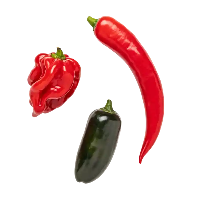 Økologisk jalapeño-, habanero- og fire flame-chili, 3-4 stk. i alt.