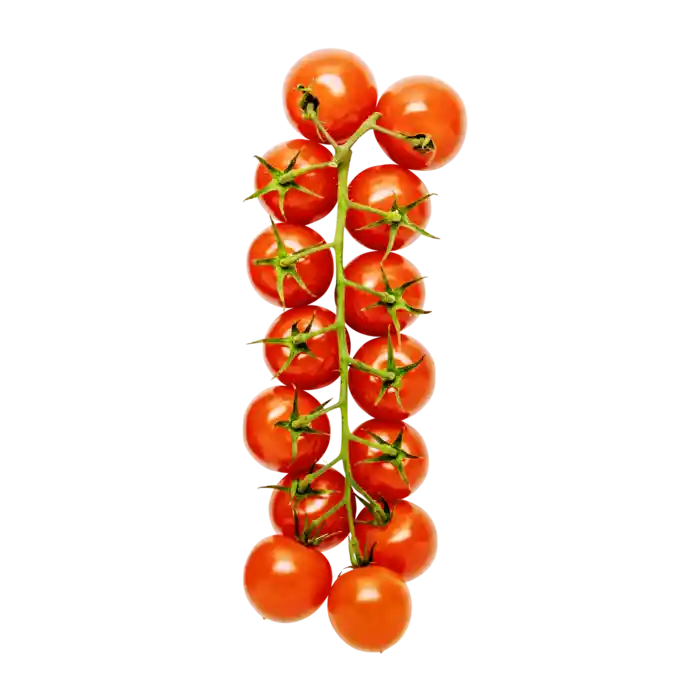 Søde og modne cherrytomater med stilk til snack og madlavning.