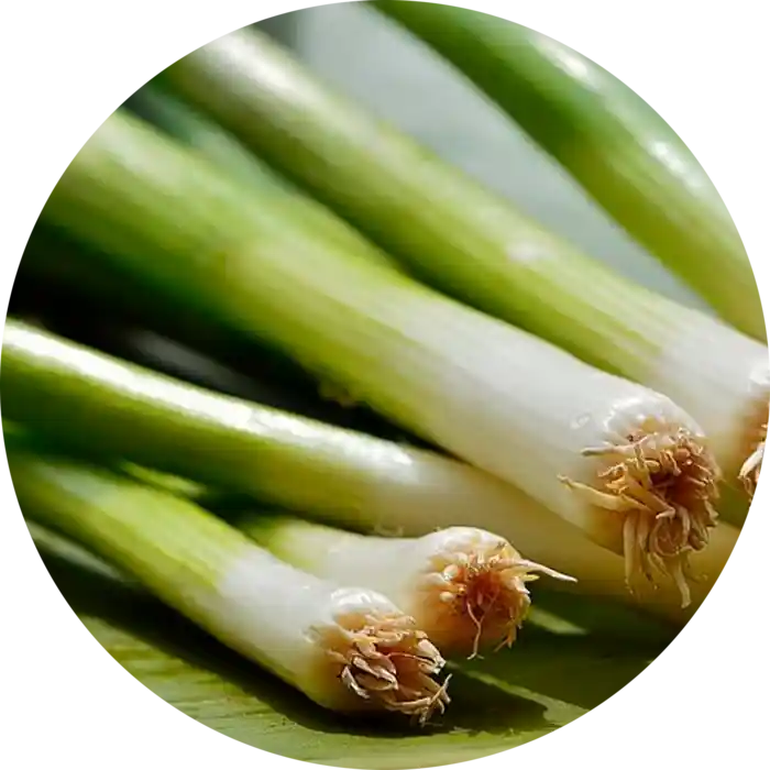 Løgene kan høstes både som slanke forårsløg eller med et lille, hvidt løg og egner sig godt til salater og wokretter.