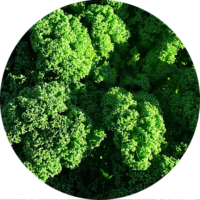 Halvhøj, vinterhårdfør grønkål med meget krusede blade. Smager bedst efter frost.