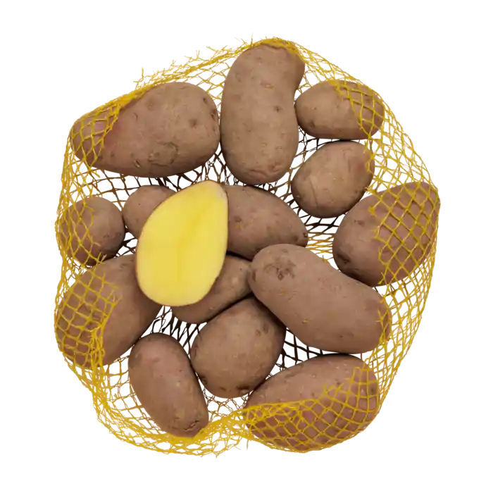 En flot kartoffel med gyldengul kødfarve under sin karakteristiske røde skræl. Smagen er mild og ren med noter, der minder om aspargeskartoflen.