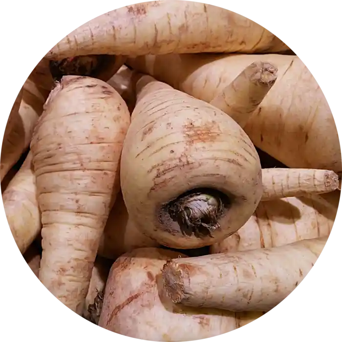 Flot, hvid, robust og næsten kerneløs rod med få siderødder. Knap så følsom overfor udtørring som persillerødder. Overvintrer fint i jorden i haven.
