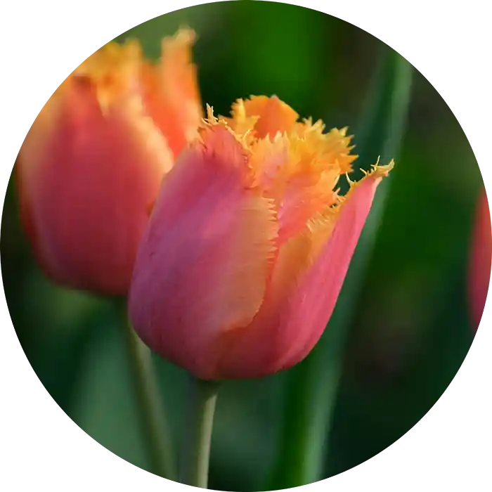 Sensual Touch har store, fyldte orange blomster med frynsede kanter. Den blomstrer midt-sent på foråret.
