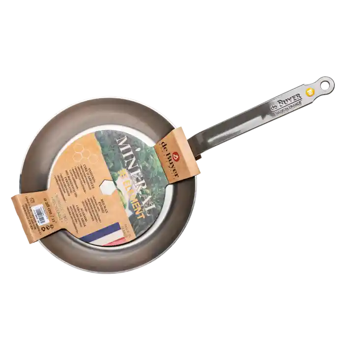 De Buyer Mineral B stegepande med håndtag i rustfrit stål.