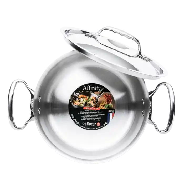 Gryde med låg i rustfrit stål fra De Buyer's Affinity-serie.