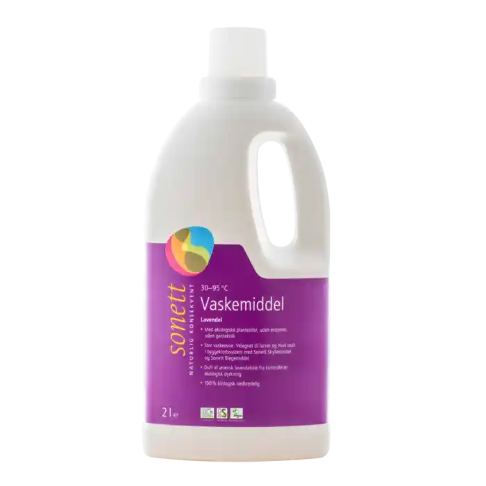 2 liter | Vaskemiddel med lavendelduft til hvidt og kulørt tøj fra Sonett