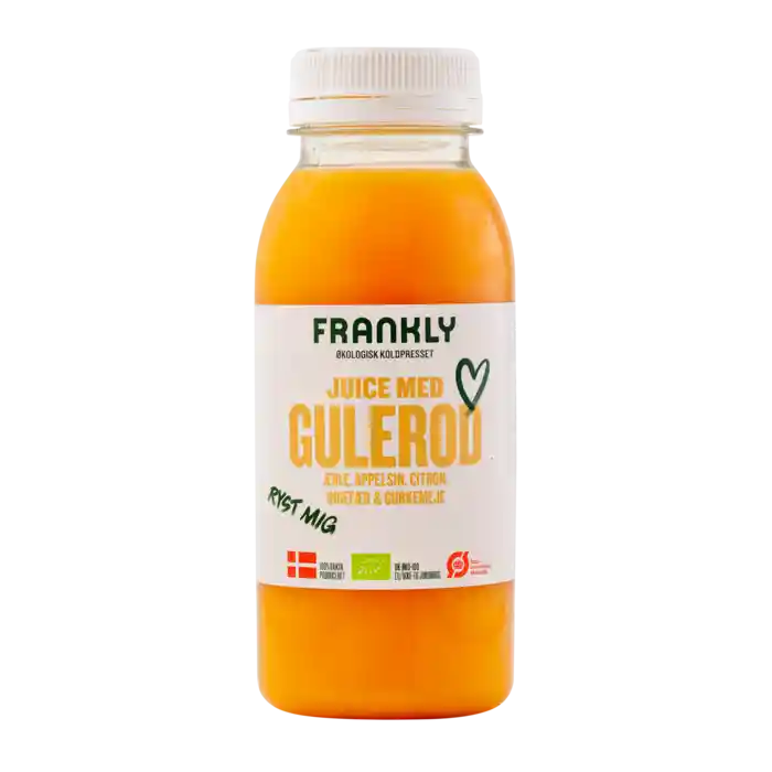Frankly er en af vores helt særlige leverandører og samarbejdspartnere. Vi leverer nemlig råvarer til dem, som de presser og hælder på flasker, sådan at I kan drikke friskpresset juice af økologiske frugter og grøntsager.