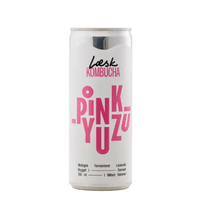 250 ml, ekskl. pant | 0,5% alkohol | Perlende frisk kombucha med hibiscus, hyldeblomst og yuzu fra Læsk
