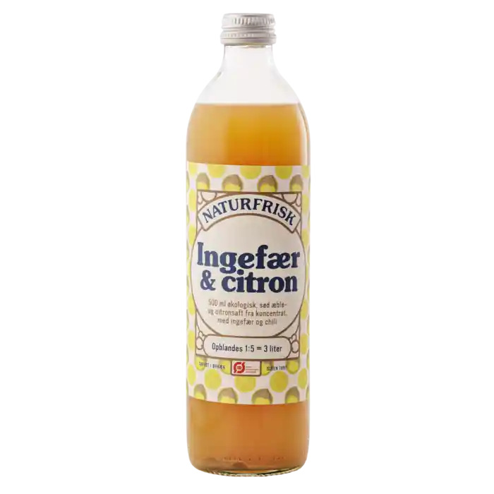 Naturfrisks Ingefær & Citron er en sød saft, der giver dig en skøn og pirrende smagsoplevelse, der på samme tid også er varm, sød og forfriskende. Server den i et glas fyldt med is og en skive citron, og du har dig en lækker drink til sommervarmen.