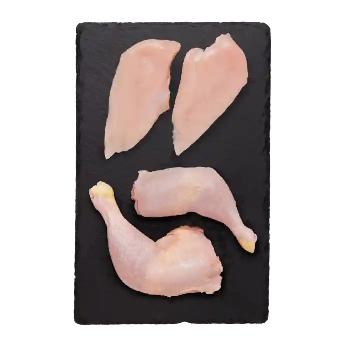 KyllingeKassen indeholder som udgangspunkt kyllingebryst og en variation af lår, men der kan også være en hel kylling i. Med KyllingeKassen er der altså rig mulighed for nemt at lave lækre og hurtige hverdagsretter med udskæringerne - eller hyggelig aftensmad med hel grydestegt kylling med masser af urter og fyldig sauce til hele familien.