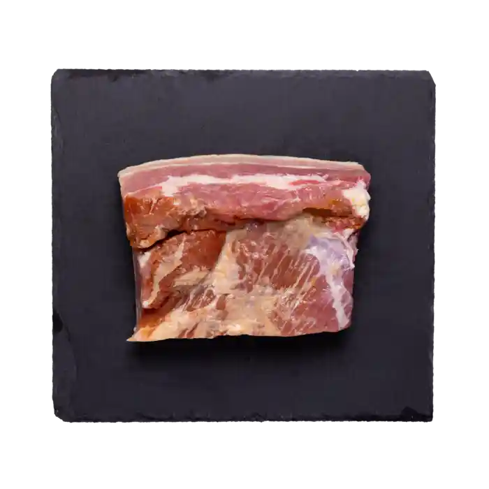 Et helt stykke røget økologisk bacon fra Holmegaards Deli, min. 200 g.