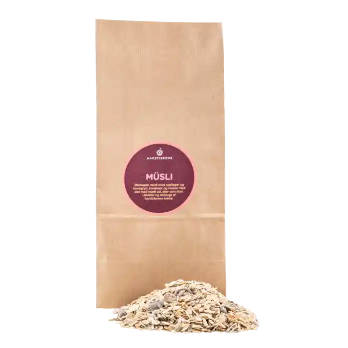Vores egen økologiske müsli, produceret i samarbejde med mølleriet Aurion i Hjørring.