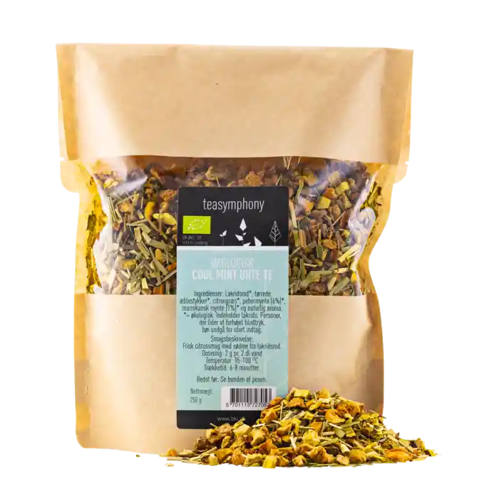 En forfriskende urtete sammensat af pebermynte, marokkansk mynte, citrongræs, æblestykker samt lakridsrod, der tilføjer en sødme. Nyd teen i en stille stund om formiddagen eller ud på eftermiddagen. Prøv også at brygge teen som koldbryg, så har du en forfriskende drik til varme dage.