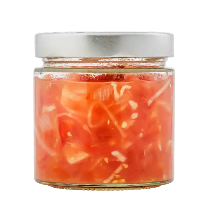 Vores fermenteringsværksteds bud på en klassisk salsa med tomater, løg og hvidkål smagt til med limesaft, chili og hvidløg.