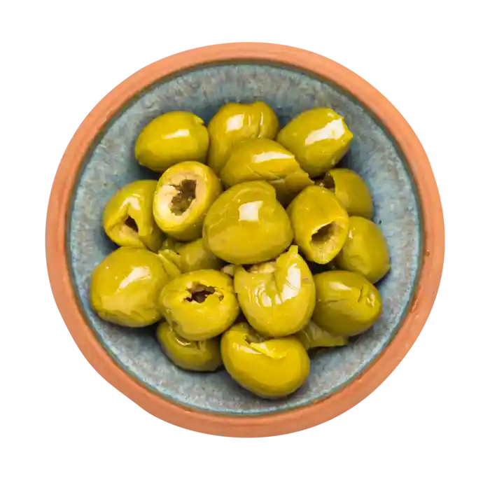 2 x 100 g | Udstenede grønne oliven i pose, lige til at snacke