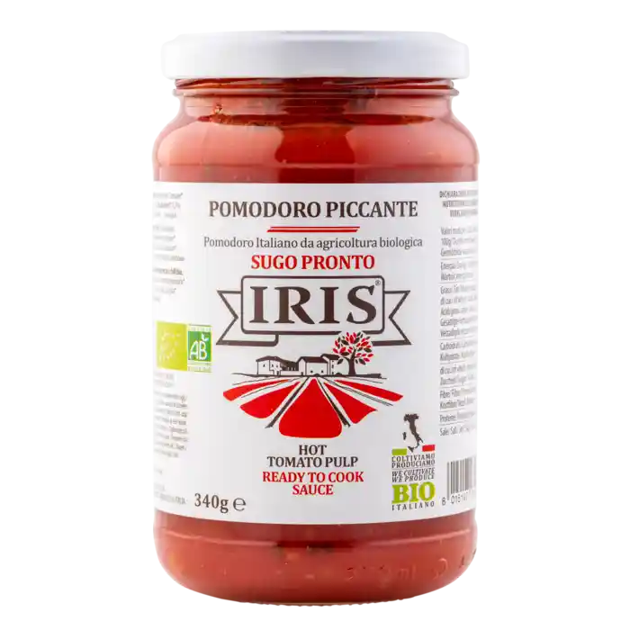 Tomaterne fra Iris har smagen af Cremona-regionens gode klima- og jordforhold. Tomaterne er forarbejdet rå og ikke tilsat sukker. Der er tilsat lidt chili for at give smagen et 'spicy' twist. Produktet er pasteuriseret.