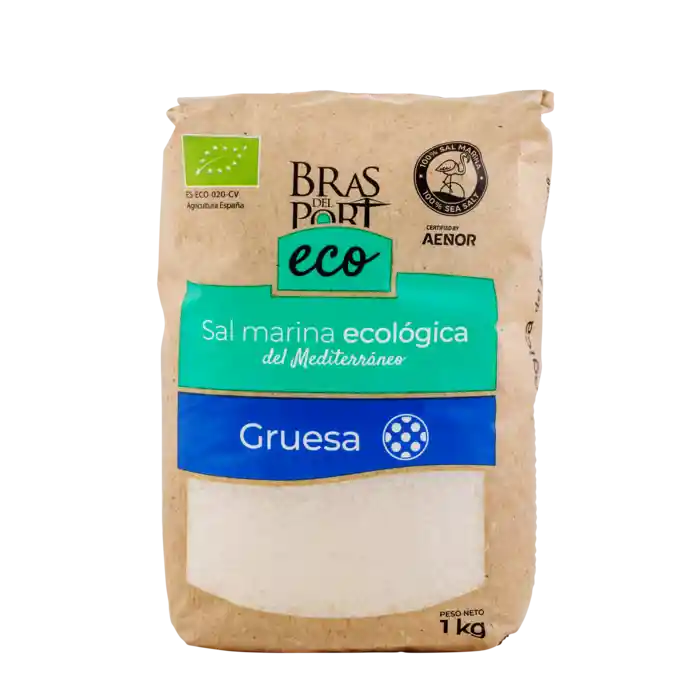 Økologisk groft havsalt fra Spanien, 1 kg.