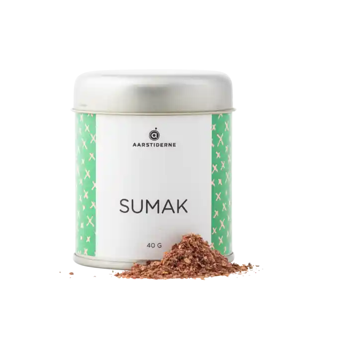 Drys sumak over salater, grøntsagsretter eller færdigtilberedt grillet kød. Sumak fungerer også godt som en tør rub eller i marinader til kød, kylling eller fisk. Du kan også tilføje sumak til yoghurtbaserede saucer, dips og dressinger eller til hummus og tabbouleh. Krydderiet tilføjer aroma, syrlige citrusnuancer og en smuk rød farve.