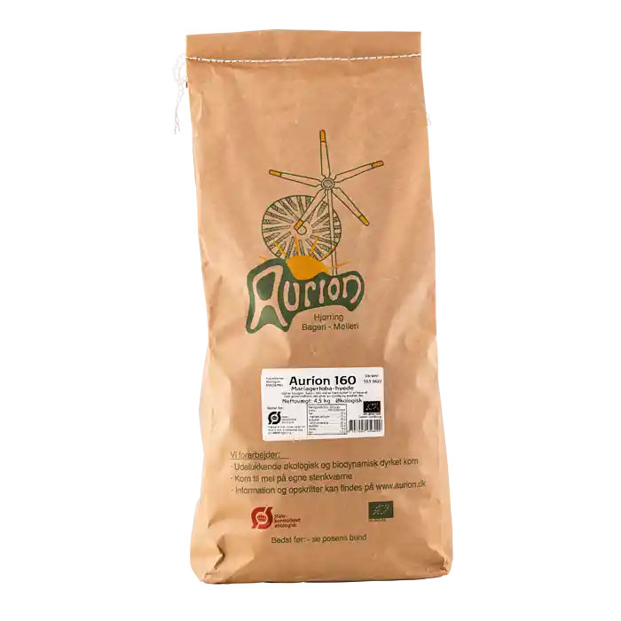 Økologisk stenformalet mariagertoba-hvedemel fra Aurion, 5 kg.