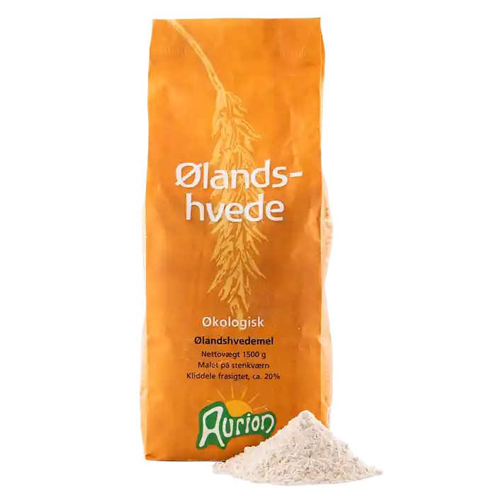 Fintmalet økologisk ølandshvedemel fra Aurion, 1,5 kg.