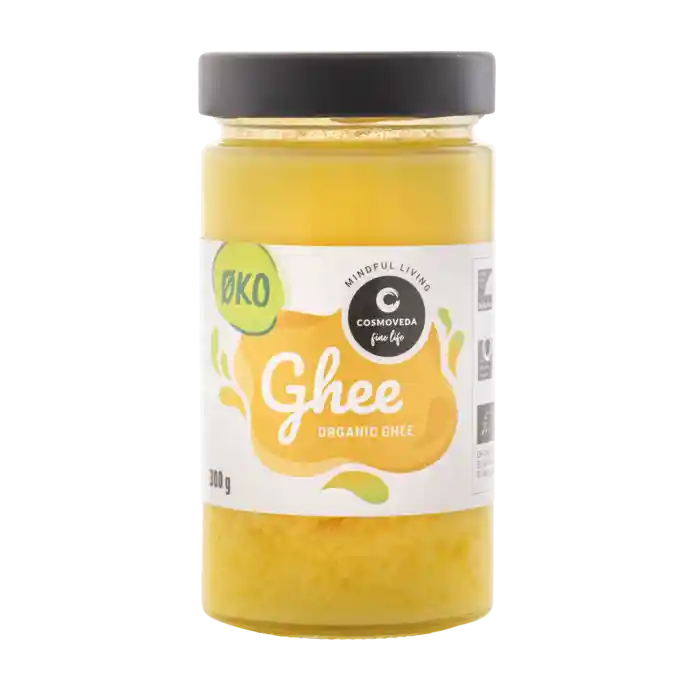 Økologisk ghee (klaret smør) fra Cosmoveda, 300 g.