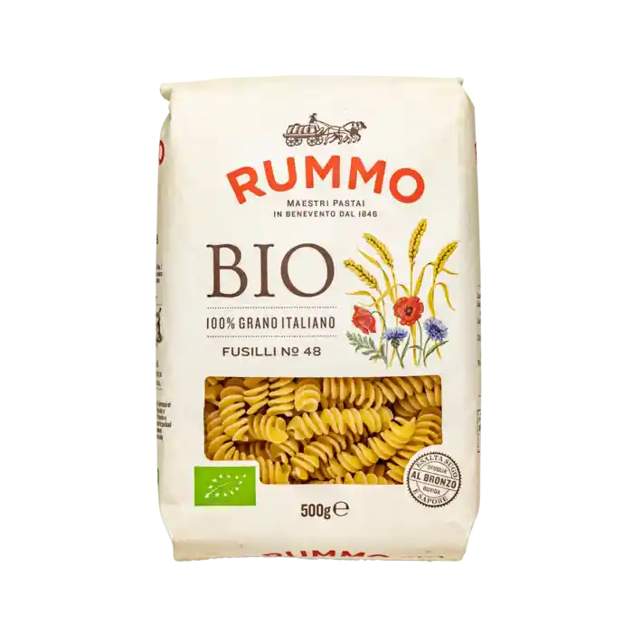 Italienske Rummo har lavet pasta siden 1846. De kombinerer traditionelle opskrifter med en egenudviklet og patenteret produktionsproces på bronzeforme. Det giver pasta med en uovertruffen kogeevne. Den er nem at få 'al dente' og beholder formen ved tilberedning.
