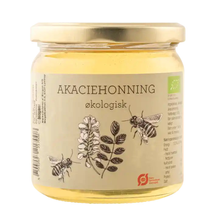 Mild, flydende økologisk akaciehonning fra Biogan, 500 g.