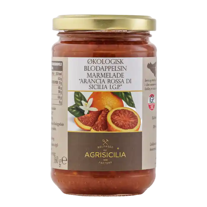 Økologisk blodappelsinmarmelade fra Agrisicilia, 360 g.
