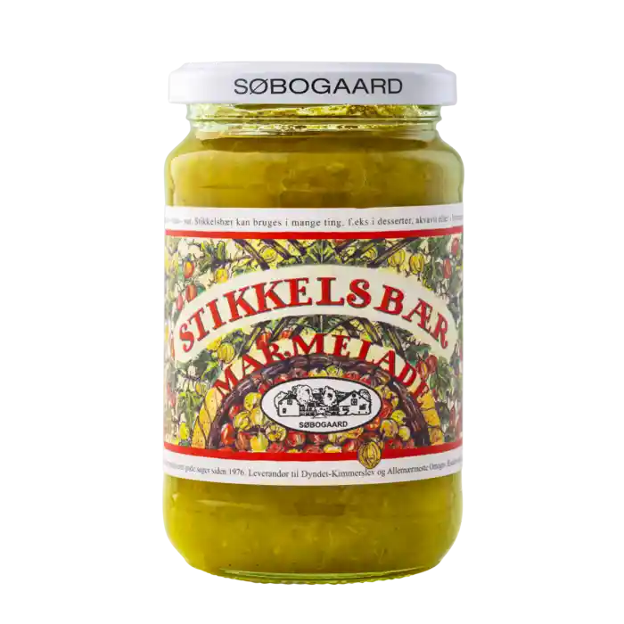 Økologisk stikkelsbærmarmelade fra Søbogaard, 400 g.