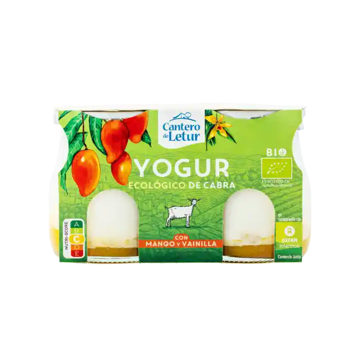 Økologisk gedeyoghurt med mango og vanilje fra Cantero de Letur i Spanien, 2 x 125 g.