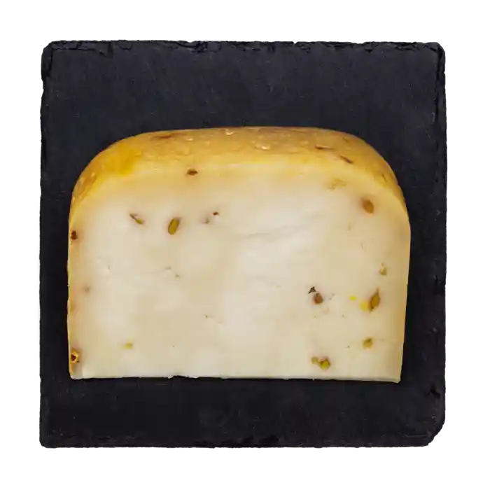 Økologisk gedegouda med bukkehornsfrø fra Nørgaards Gedemejeri, 200 g.