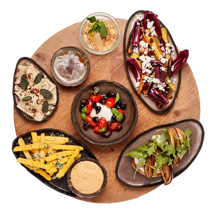 Det er et uhøjtideligt måltid med grønt i hovedrollen, hvor det handler mindre om traditioner og mere om stemningen. Retterne serveres på én gang og indbyder til, at der bliver delt fade, smil og nærvær rundt om bordet. Middagen afsluttes med en portionsanrettet dessert, som prikken over i’et.