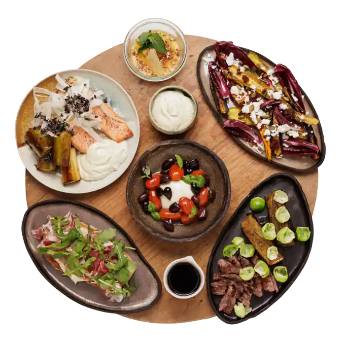 6 delevenlige retter - sammensat så de komplimenterer hinanden og mætter på den dejligste måde: