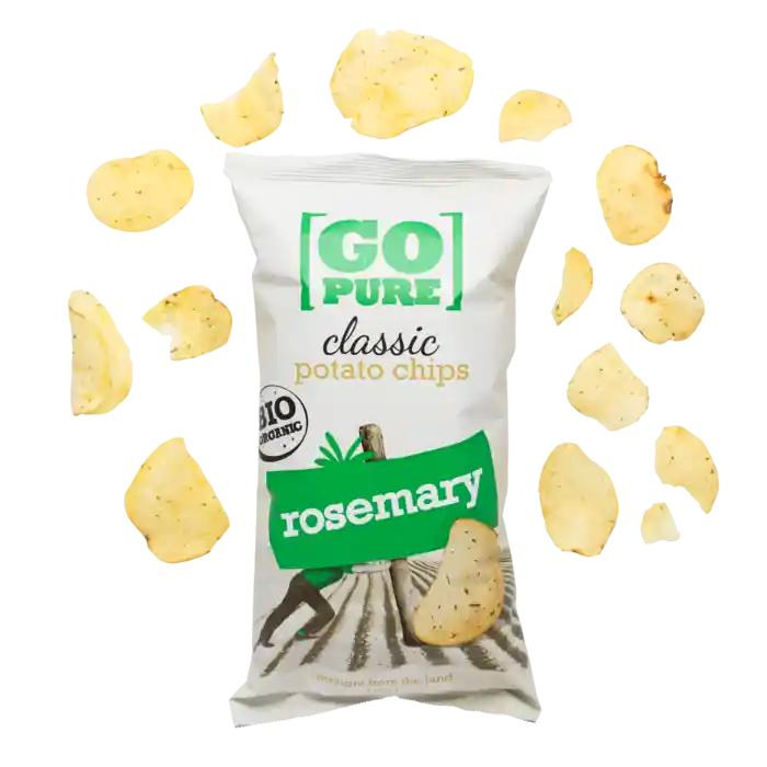 Økologiske kartoffelchips med rosmarin og havsalt fra GoPure, 125 g.