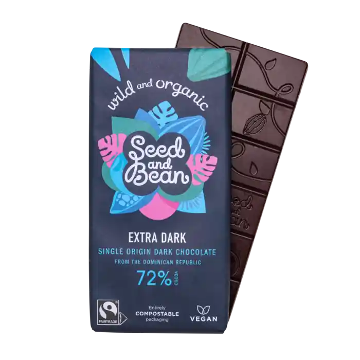 Økologisk 'Extra Dark' mørk chokolade (72 %), fra Seed and Bean, 75 g.