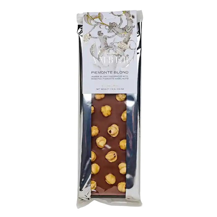 En blød og rund mælkechokolade med let ristede Piemonte-hasselnødder. Smagen er fyldig med noter af frisk mælk, karamel og vanilje, mens nødderne tilfører sprødhed og dybde. En lille luksus til stille stunder.